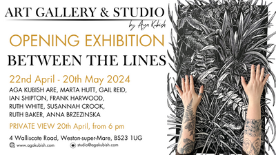 Between The Lines ART EXHIBITIONWelcome to the inaugural opening exhibition at ART GALLERY & STUDIO by Aga Kubish ARE in Weston-super-Mare, where we proudly present the works of nine Somerset-based artists:Aga Kubish ARE, Marta Hutt, Gail Reid, Ian Shipton, Frank Harwood, Ruth White, Susannah Crook, Ruth Baker and Anna Brzezinska.This diverse collection features portraits, landscapes, still life and more.Discover narratives of portraiture, from intimate close-ups to expressive large scale compositions, these artworks offer a glimpse into a human condition.Read between the lines as our artists explore a variety of mediums and styles, pushing the boundaries of traditional art forms. From...